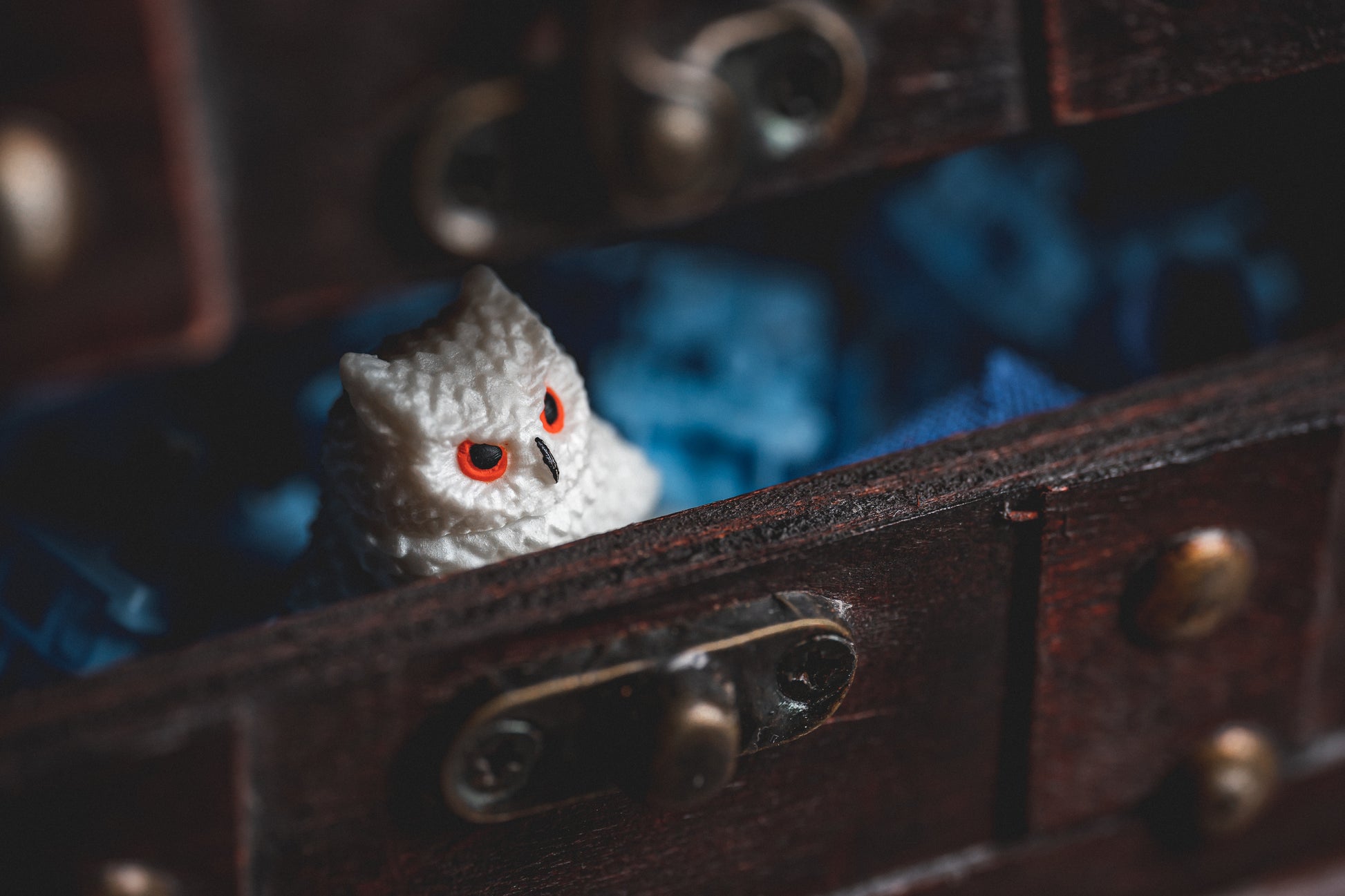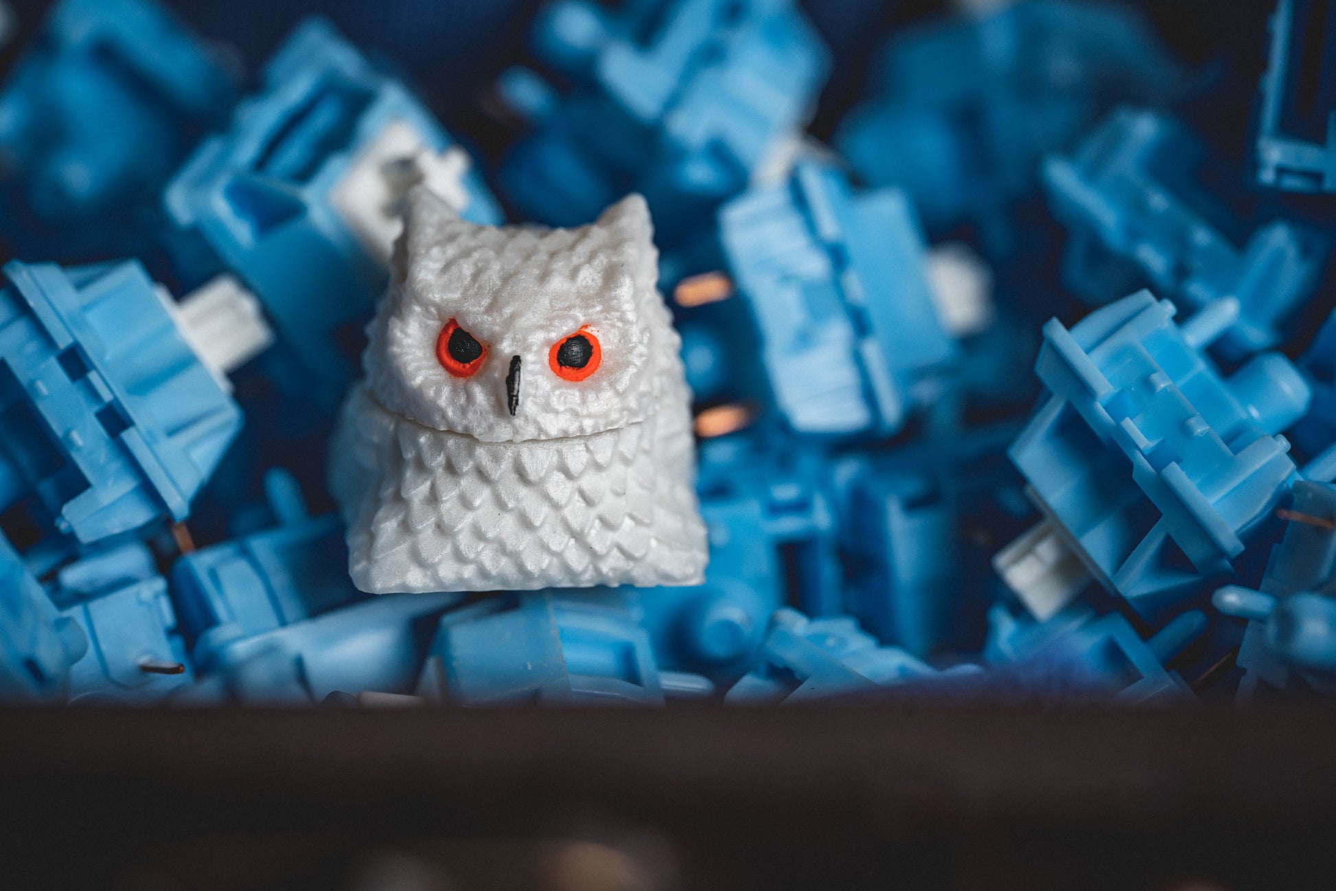 回転する頭を持つフクロウ。エポキシ樹脂職人のキーキャップ