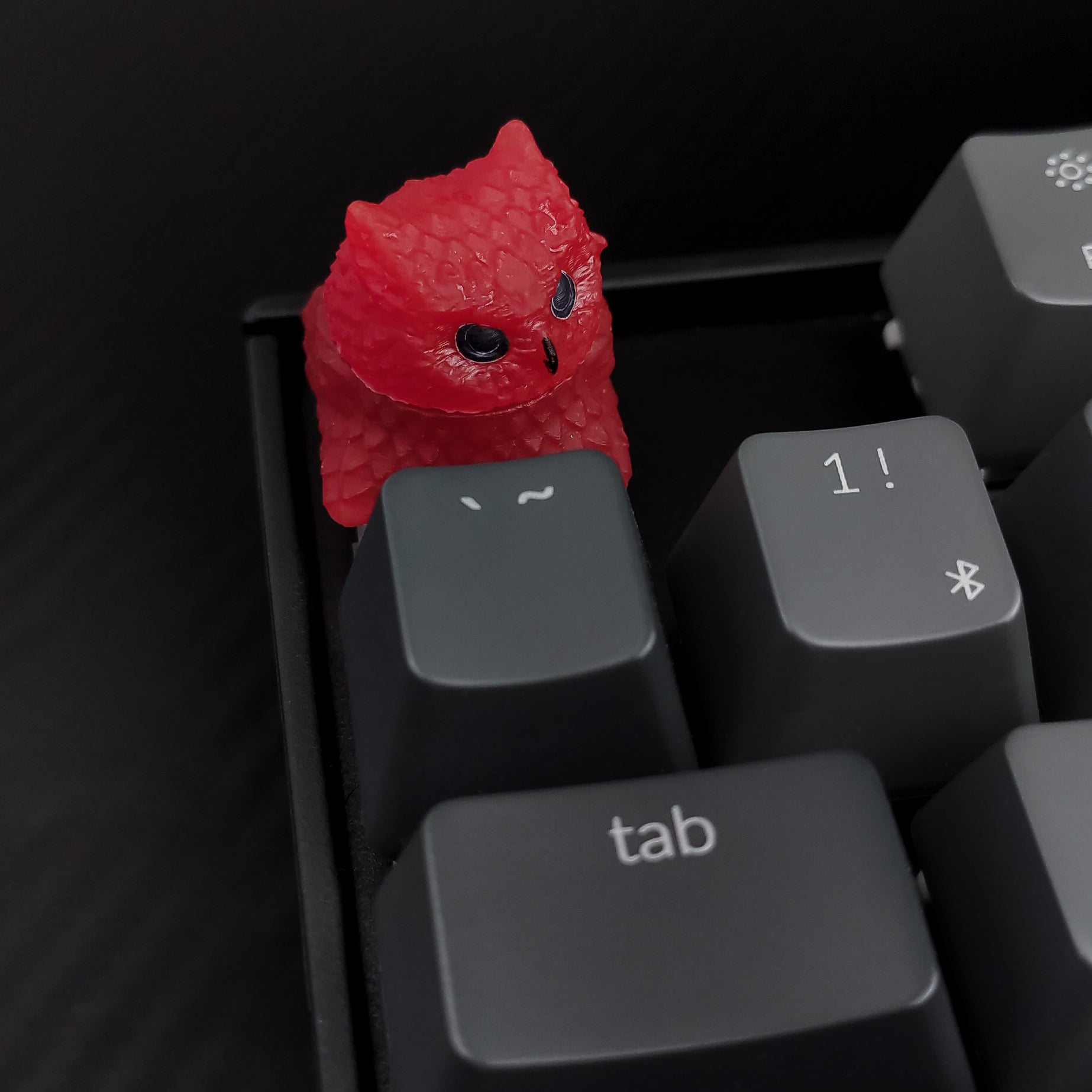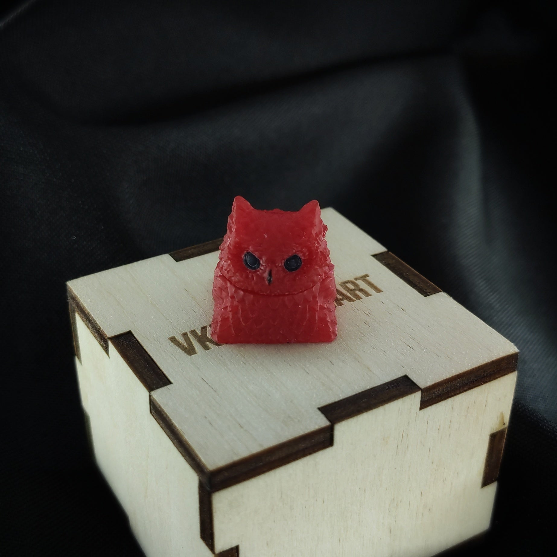 回転する頭を持つフクロウ。エポキシ樹脂職人のキーキャップ